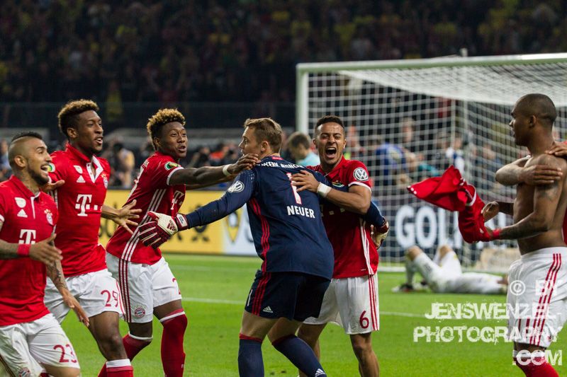 Das DFB Pokalfinale 2016 in Berlin zwischen dem FC Bayern München und Borussia Dortmund wurde nach einem 0:0 Unentschieden nach der regulären Spielzeit und der Verlängerung im Elfmeterschießen entschieden. Am Ende siegten die Bayern mit 4:3.